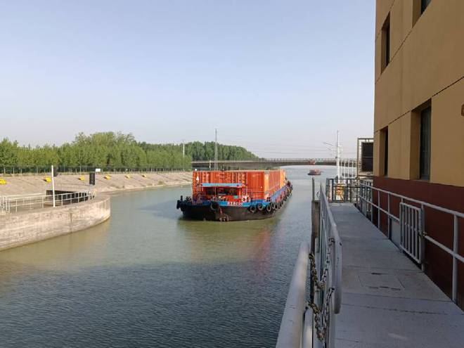 5月以來,在微山船閘、長溝船閘,濟港貨001、港航潤楊5003、微梁666、潤楊2999等船舶相繼過閘,成為第一批享受京杭運河山東段集裝箱船運免費政策,就此拉開了京杭運河山東段集裝箱船運免費過閘的序幕。