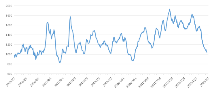 本期2023年7月1~7日中國內貿集裝箱運價指數(XH·PDCI)小幅下滑