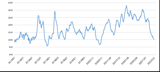 另外,福建指數報收1420點,環比上漲124點,漲幅9.57%;華東指數報收1358點,環比下跌37點,跌幅2.65%;山東指數報收995點,環比持平。